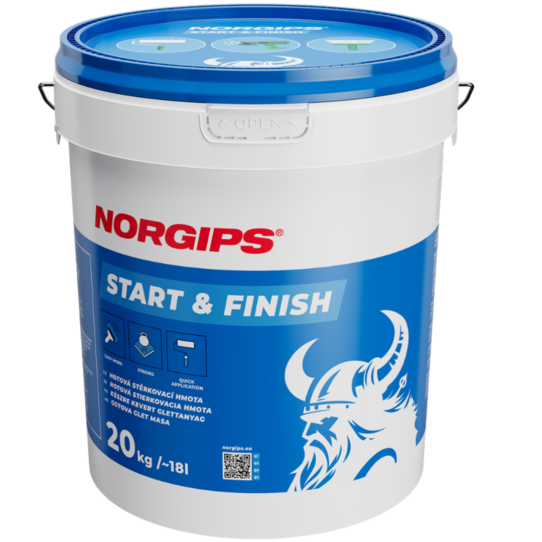 S přechodem na poloautomatické nářadí se vyplatí také změnit používaný tmel. Tradiční tmely v prášku nejsou vhodné pro práci s aplikátory. Doporučujeme přejít na hotové pastové tmely, zejména tzv. lehčené (šlehané) směsi, jako je NORGIPS Start & Finish nebo Knauf Fill & Finish Light. Tyto tmely mají nižší hmotnost, vysokou vydatnost, méně se propadají a dobře se brousí. Oproti klasickému suchému tmelu tak získáte hned několik výhod: