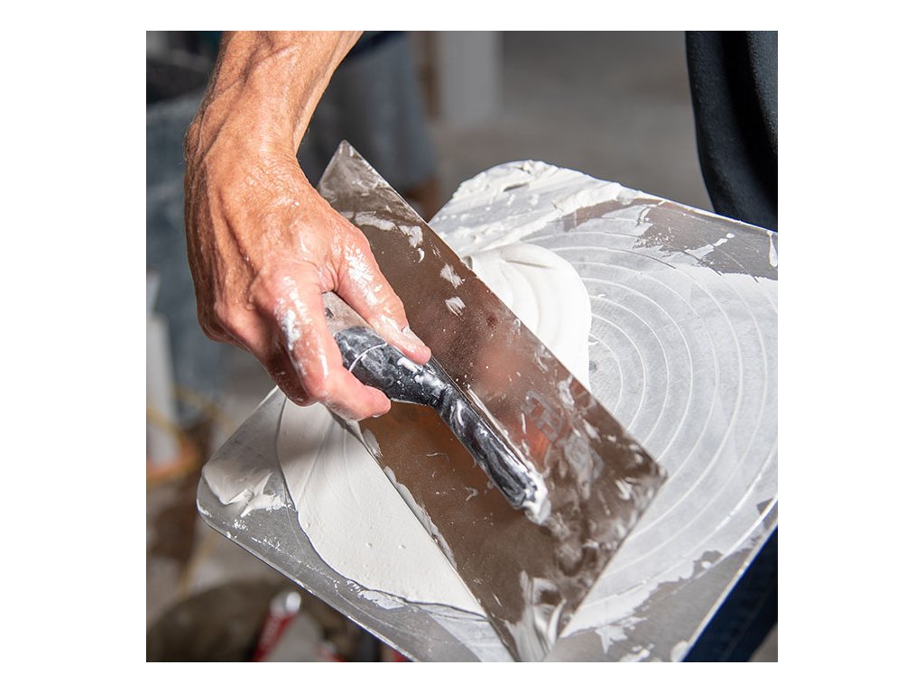 Základem je deska vyrobená z jednoho kusu masivního extrudovaného hliníku, která zaručuje mimořádnou pevnost a odolnost. Patentovaný povrch s tvrdou nepřilnavou úpravou nejen extrémně usnadňuje čištění, ale především zajišťuje, že vaše špachtle bude po povrchu hladce klouzat bez zadrhávání.