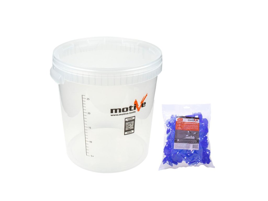 MOTIVE Sada nivelačních klipsů 1,5 mm (1000 ks) v 33l kbelíku s měrkou