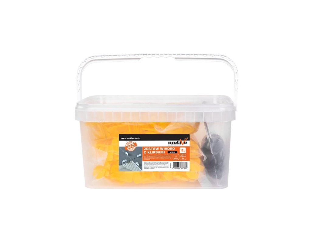 MOTIVE Vysokoprofilové nivelační klipsy 2 mm – 330 ks v plastové nádobě 10 l